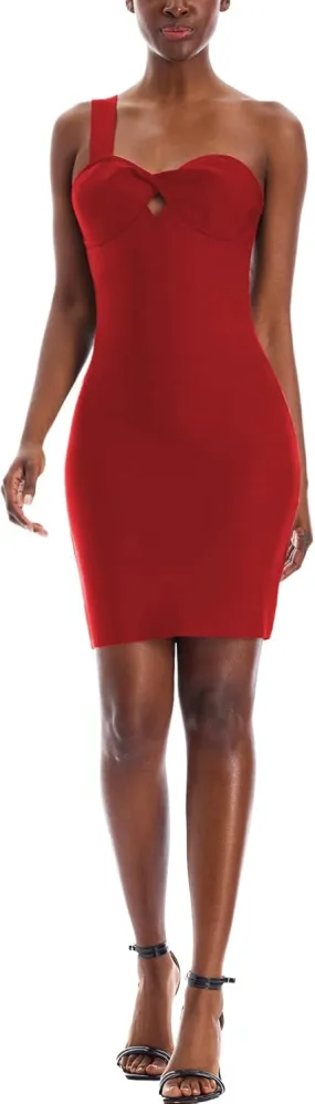 Hybrid & Company Womens Stylish One Shoulder Knotted Bodycon Straps Dress